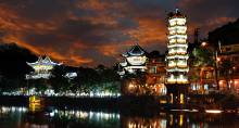 下午安排:乘車赴【芙蓉古鎮(zhèn)】(贈(zèng)送門(mén)票、景區(qū)環(huán)保車和酉水畫(huà)廊已含),山水如畫(huà),多情的酉水養(yǎng)育了世世代代的土家兒女,也造就了沿岸動(dòng)人的風(fēng)光,酉水畫(huà)廊納含著芙蓉鎮(zhèn)的草木、山水、人兒,一道道美麗的彩虹是它編織的最美西蘭卡普。這里得酉水舟楫之便,上通川渝,下達(dá)洞庭,素有“楚蜀通津”之稱。因謝晉執(zhí)導(dǎo),劉曉慶、姜文主演的電影《芙蓉鎮(zhèn)》在此取景而出名,于是人們便把此地叫做芙蓉鎮(zhèn)。時(shí)代變遷,歷久彌新,更因其獨(dú)特的原始人文,靜謐山水成為新時(shí)代湖南旅游新寵。芙蓉古鎮(zhèn)大瀑布,酉水碼頭繁華依舊!乘車赴神秘湘西深處鳳凰古城,這里被譽(yù)為遠(yuǎn)去的家園,夢(mèng)中的故鄉(xiāng),邂逅邊城的燈火闌珊,品味獨(dú)特的夢(mèng)里苗疆。游覽被新西蘭著名作家路易艾黎稱贊為中國(guó)最美麗的小城--【鳳凰古城】,體驗(yàn)和感受鳳凰古城的九大精華:一座青山抱古城、一泓沱水繞城過(guò)、一條紅紅石板街、一道風(fēng)雨古城墻、一座雄偉古城樓、一個(gè)美麗彩虹橋、一排小橋吊腳樓、一批聞名世界的人、一個(gè)國(guó)家級(jí)非遺文化遺產(chǎn)!