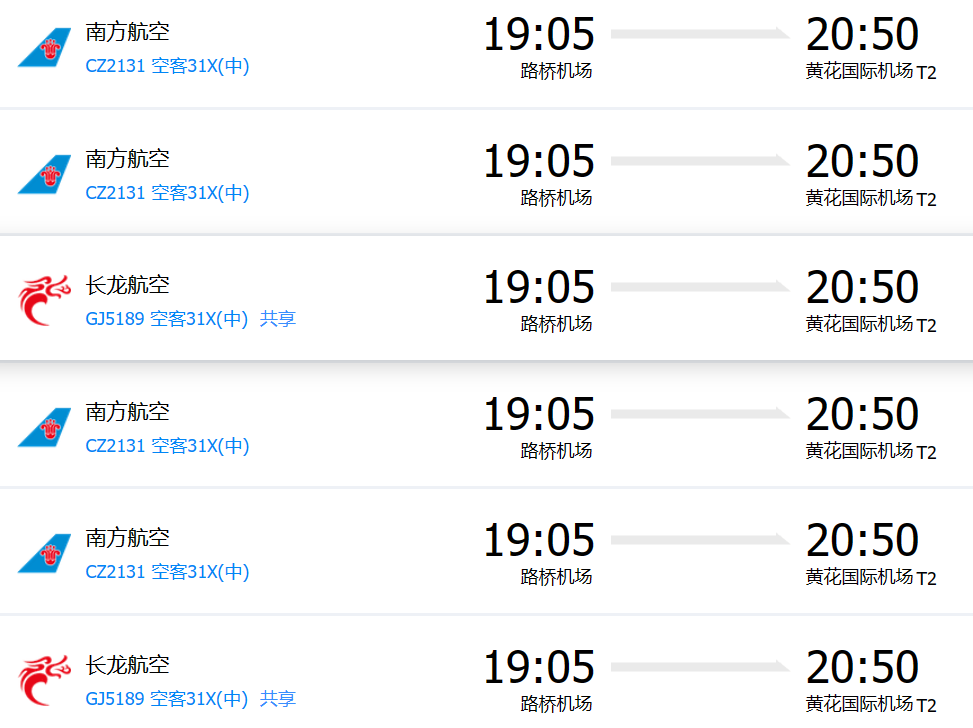 臺州路橋機(jī)場有直飛湖南長沙黃花機(jī)場的航班,具體參考如下: