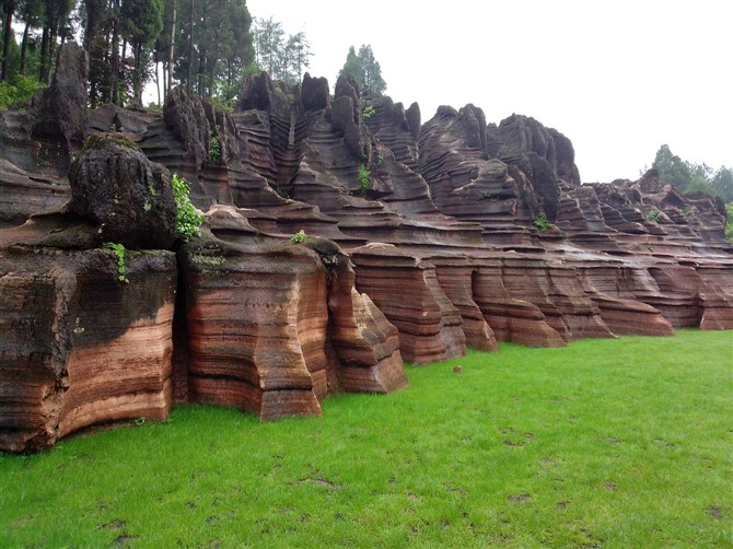從地質(zhì)歷史的印記中我們得知:大約在4億8千萬年的早奧陶世,這里曾是一片淺海環(huán)境,沉積形成了薄至中厚層瘤狀泥質(zhì)灰?guī)r和石灰?guī)r,到了2億2千萬年中三疊世末期,印支期主幕安源造山運(yùn)動使紅石林地區(qū)隆起成為陸地,并在地球應(yīng)力的作用下,形成了北西和北東向兩組共軛節(jié)理,此后,在大自然鬼斧神工的雕琢下,以“風(fēng)化”、“水蝕”、“溶蝕”和“重力”等外動力地質(zhì)作用,將這片神奇的紅色巖溶臺地分割打磨成展現(xiàn)在我們面前的獨(dú)具鮮明特色的、中國唯一的一處紅色碳酸鹽巖石林。