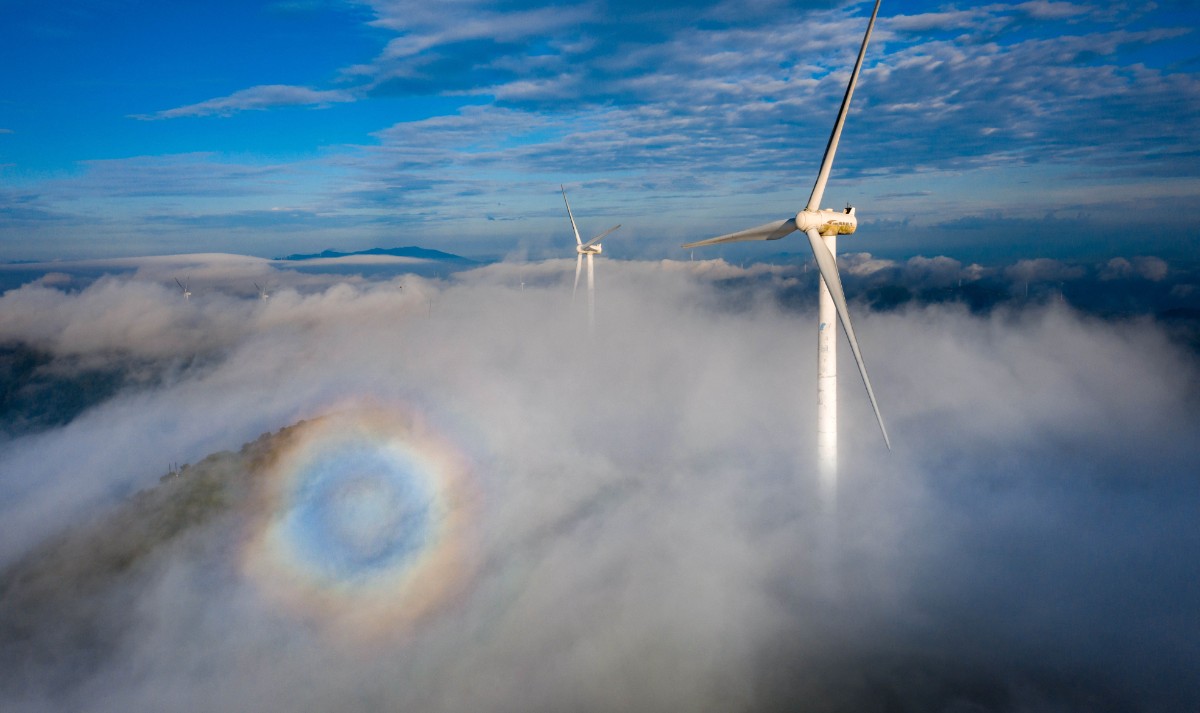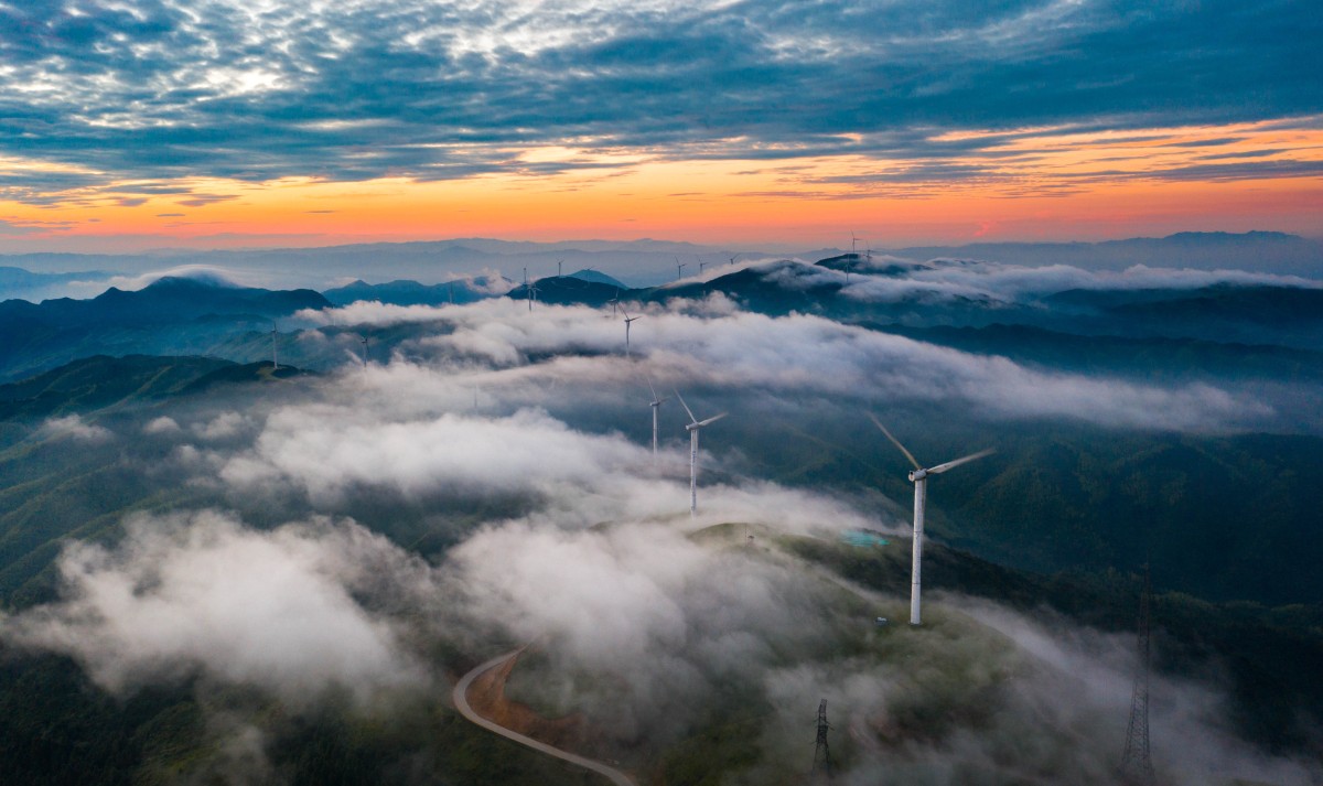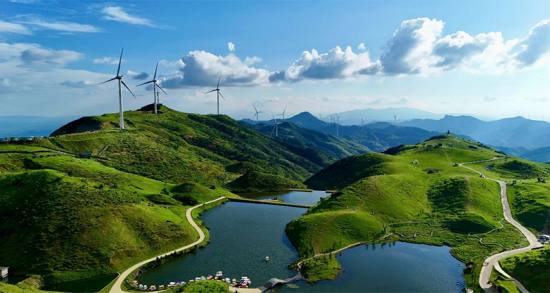 高聳入云的“大風車”沿著山脊蜿蜒數(shù)百公里,高聳入云,猶如一條條巨龍騰空遠去,蔚為壯觀。