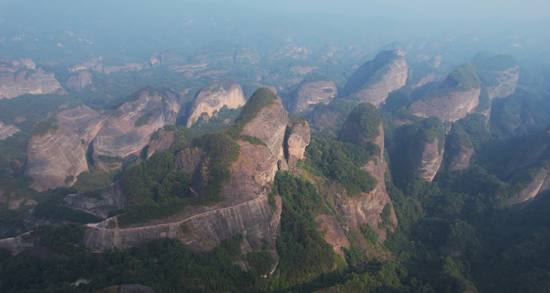 丹霞地貌屬于紅層地貌,所謂“紅層”是指在中生代侏羅紀至新生代第三紀沉積形成的紅色巖系,一般稱為“紅色砂礫巖”。世界上丹霞地貌主要分布在中國、美國西部、中歐和澳大利亞等地,以我國分布最廣,又尤以崀山為中國丹霞地貌峰景區(qū)中豐度和品位代表性和最優(yōu)美的景區(qū),以完整的紅盆丹霞地貌計,居全國第一,是一座天然的丹霞地貌博物館,被地質(zhì)專家們譽為“丹霞之魂、國之瑰寶”。