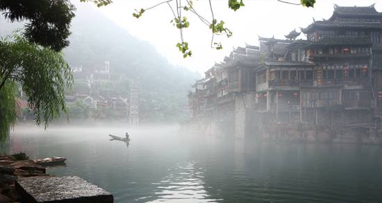 沱江河是古城鳳凰的母親河,她依著城墻緩緩流淌,世世代代哺育著古城兒女。坐上烏蓬船,聽著艄公的號子,看著兩岸已有百年歷史的土家吊腳樓,別有一番韻味。順水而下,穿過虹橋一幅江南水鄉(xiāng)的畫卷便展現(xiàn)于眼前:萬壽宮、萬名塔、奪翠樓……一種遠離塵世的感覺悠然而生。沱江的南岸是古城墻,用紫紅沙石砌成,典雅不失雄偉。城墻有東、北兩座城樓,久經滄桑,依然壯觀?! °铀宄?,城墻邊的河道很淺,水流悠游緩和,可以看到柔波里招搖的水草,可以撐一支長篙漫溯。沿沱江邊而建的吊腳樓群在東門虹橋和北門跳巖附近,細腳伶仃的立在沱江里,象一幅永不回來的風景。