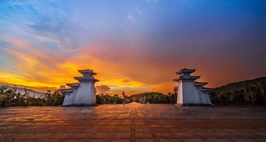 炎帝陵闕門位于公祭區(qū)入口處,2011年5月,該工程榮獲株洲市“十大標志性重點工程”,采用最先進的石材干掛工藝建造而成。主塔高17.09米,被譽為“中華第一闕”。沿祭祀大道兩側(cè)立5對五谷柱,高8.79 米,直徑1.2 米,分別雕飾稻、梁、菽、麥、黍圖案。